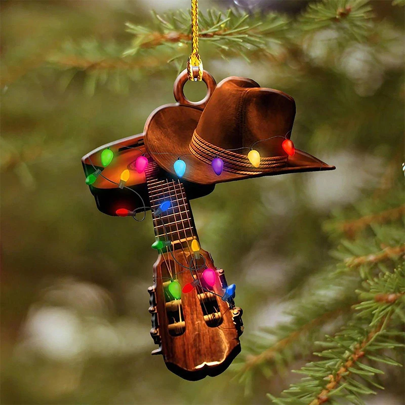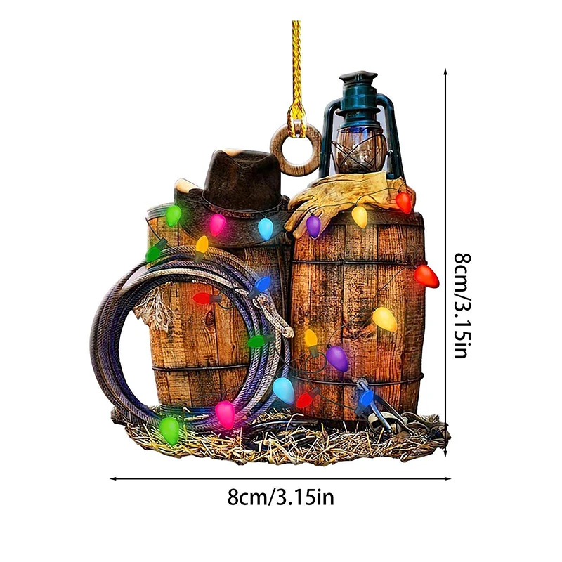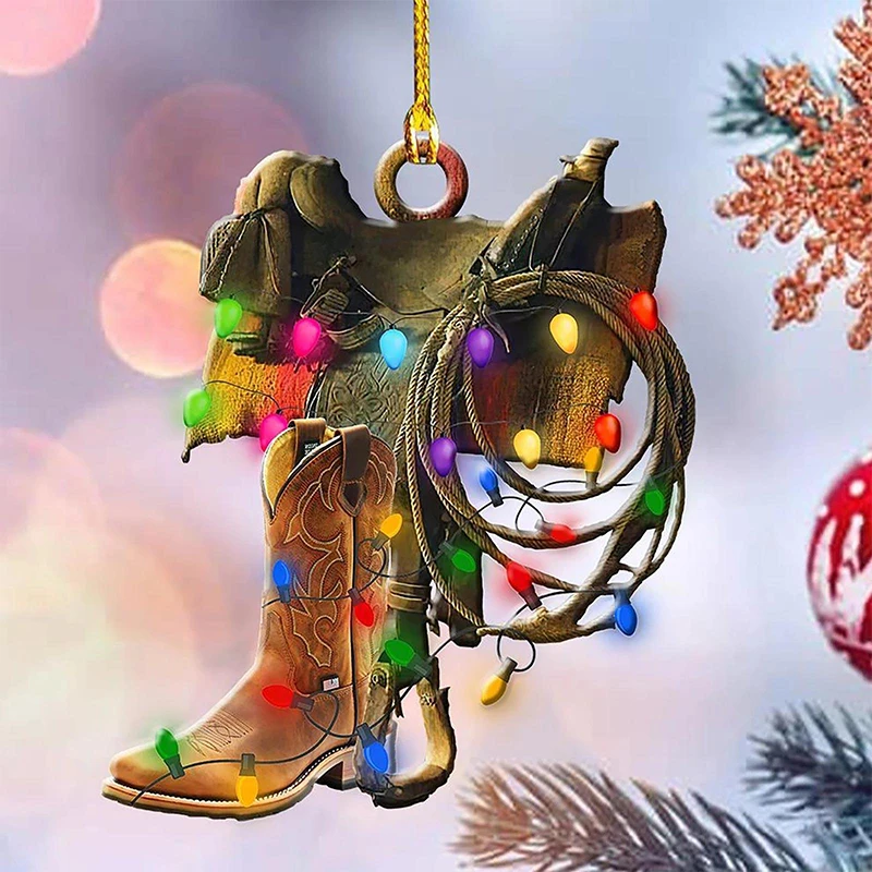 Cowboy Cowgirl Horse Lover Hat Boots Wild West String Lights 2D Flat Car Rear View Mirror Accessories Christmas Tree Ornament